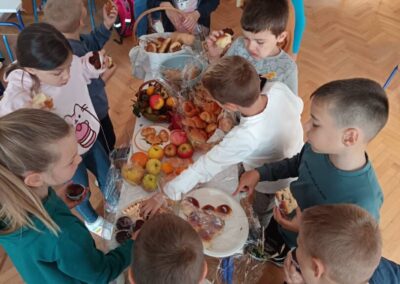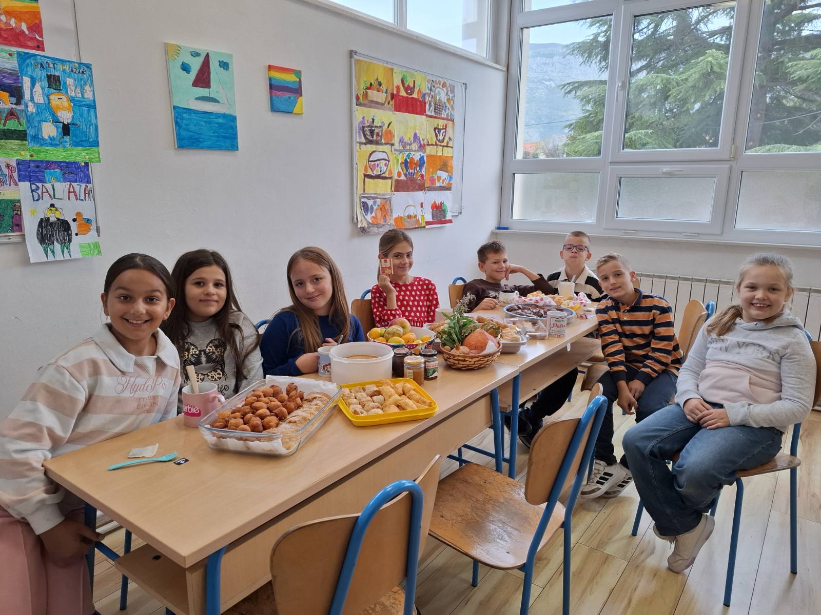 U našoj školi protekli tjedan učenici razredne nastave raznim aktivnostima obilježili su Tjedan zdravog doručka i Svjetski dan hrane 16. listopada. Po razrednim odjelima na različite načine učenici su razgovarali, razmišljali, crtali i pjevali o zdravim namirnicama, domaćoj hrani, voću i povrću. Bogatim jesenskim plodovima koji uspijevaju u Konavlima djeca su ispunila učionice, isprobala različite vrste voća i svih proizvoda koji su neophodni za zdravi rast i razvoj svakog čovjeka.