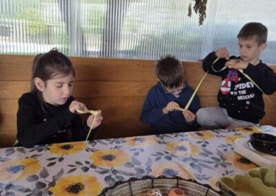 Učenici Područne škole Dubravka sudjelovali su u zanimljivoj i edukativnoj radionici upoznavanja uskrsnih običaja, pletenja palmi i izrade uskrsnih jaja. Gospođa Marija Đano je pokazala tradicionalne tehnike penganja jaja te izrade palmica. Djeca su s velikim interesom pratila svaki korak. Svi su učenici izradili svoj križić, a neki su se okušali i u pletenju palmica razvijajući pritom svoju kreativnost i spretnost. Osim praktičnog dijela, gospođa Đano razgovarala je s učenicima o bogatim običajima konavoskih obitelji vezanima uz Uskrs. Učenici su imali priliku naučiti više o tradiciji svoga kraja, važnosti očuvanja kulturne baštine te značenju blagdanskih običaja koji se prenose s generacije na generaciju. Radionica je protekla u ugodnoj i veseloj atmosferi, a učenici su kući ponijeli ne samo vlastite rukotvorine, već i nova znanja i lijepa sjećanja. Zahvaljujemo gospođi Mariji Đano na strpljenju i toplini kojom ste vodili kroz svaki korak radionice, kao i znanju koje ste velikodušno podijelili s nama.